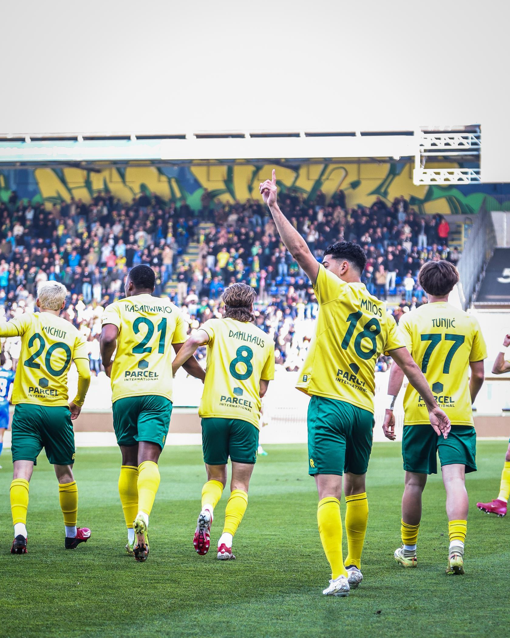 Fortuna zit er, zeker na de openingstreffer, kort op bij Twente. Dat kan rekenen op applaus vanaf de tribunes. AAN'M!